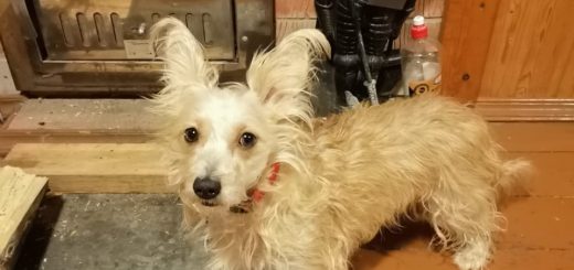 Надет красный ошейник.Кличка — «Нюша»